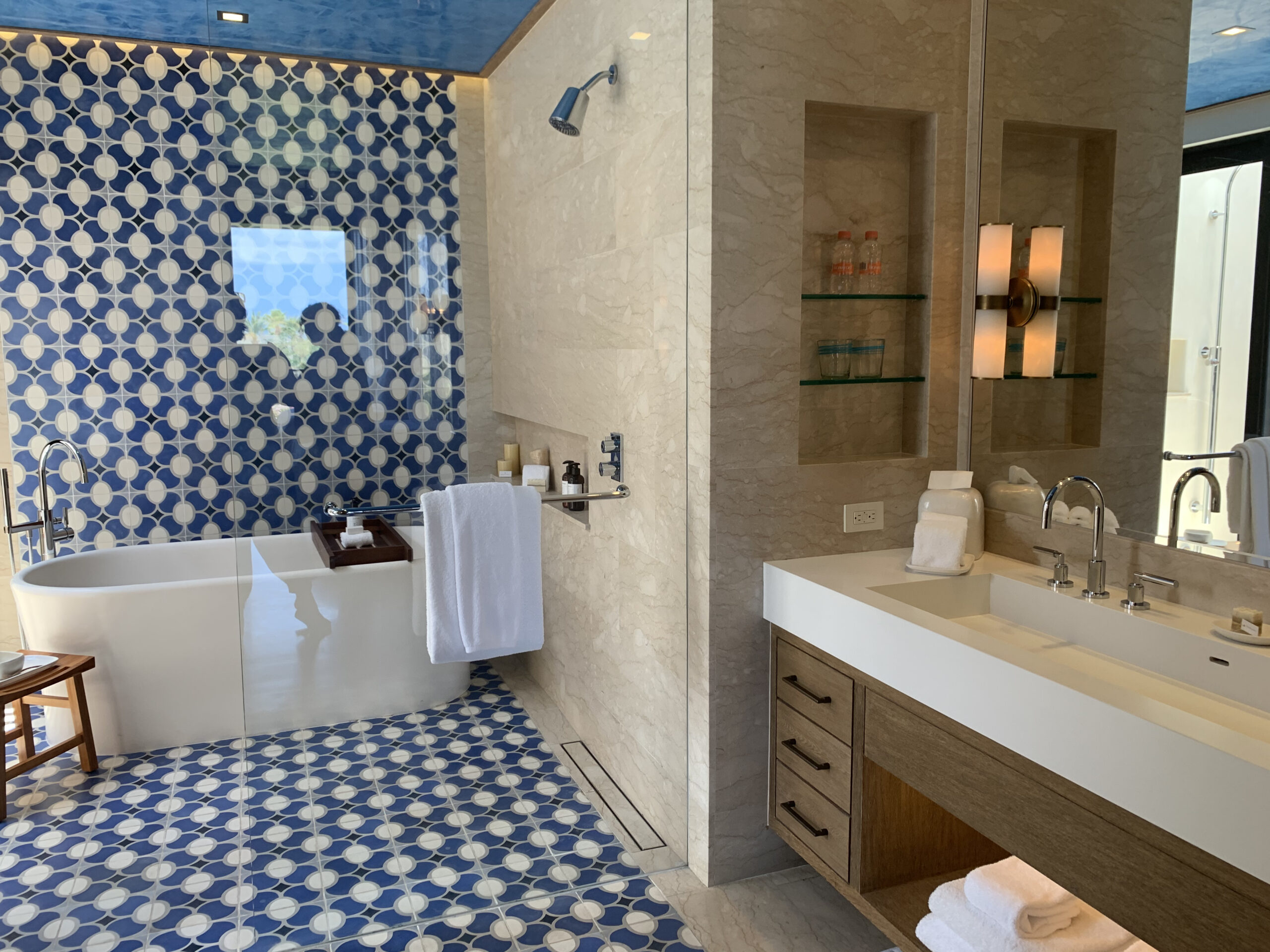 All of the rooms feature private terraces with views of the ocean, garden, or pool. My favorite aspect of the rooms was the most beautiful bathrooms I have experienced in Cabo. They were supremely spacious and sported the most beautiful tile design work that felt Mexican, modern and stylish all at the same time. I developed severe bathroom envy after my visit.