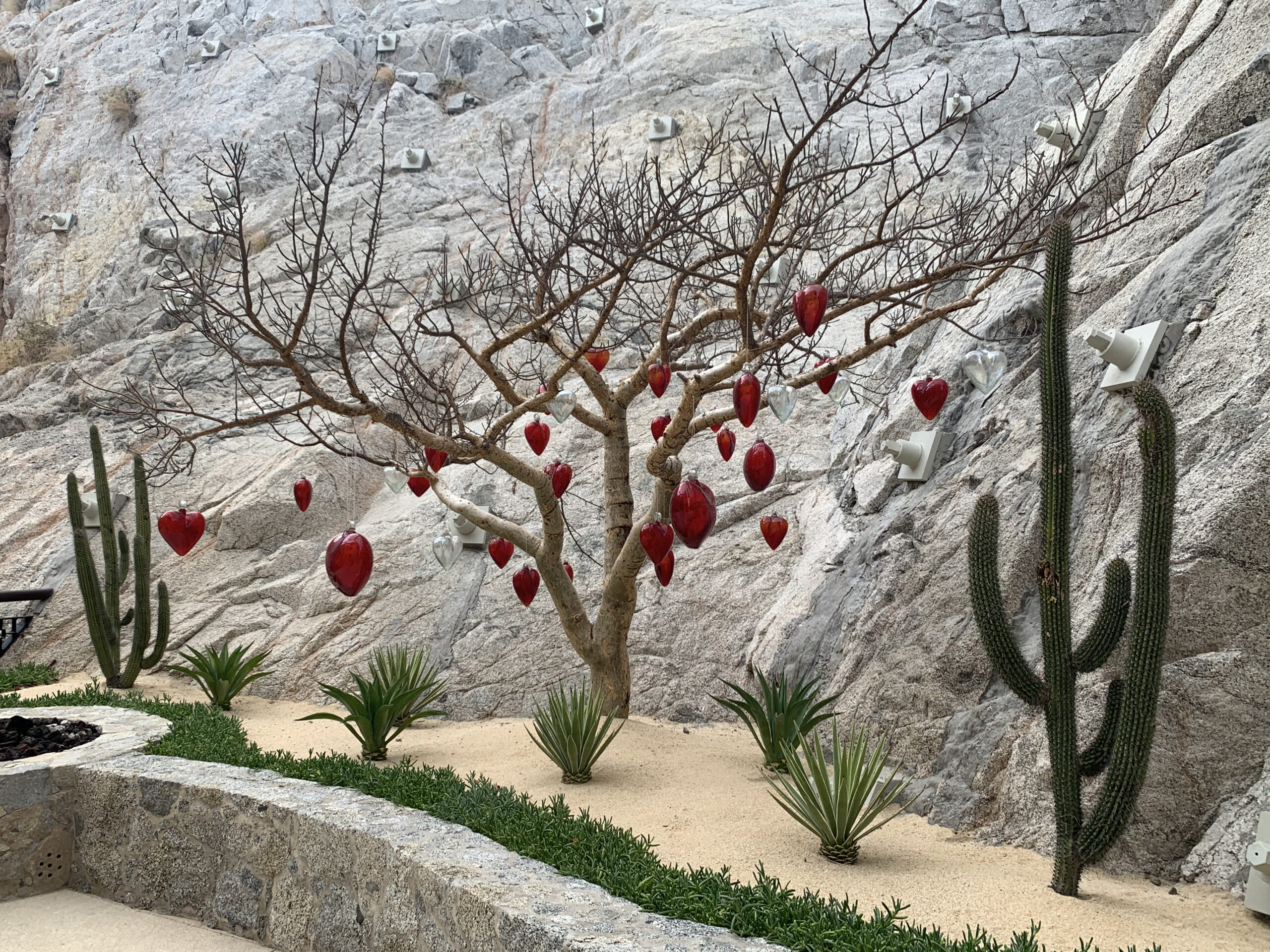 One&Only Palmilla is the original luxury resort in Cabo San Lucas – originally built in 1956 as a vacation getaway for the son of the Mexican president. When Palmilla’s 15-room hotel opened to guests, it was accessible only by boat or plane, making it a very exclusive getaway for the rich and famous. Today, under the ownership of One&Only, the 200-room resort is still a chic hideaway, albeit one easier to get to, and still a favorite of celebrities and the well-to-do. We loved exploring the original whitewashed chapel (yes, the hotel has its own church, making it a perfect choice for a destination wedding), fountain, and the historic first hotel building. But our favorite aspect of the hotel are the beautiful grounds of One & Only Palmilla – lush, exotic and perfectly manicured, and decorated, creating a stunning tropical yet modern oasis.